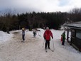 Při přípravě na celodenní lyžování (díky teplé zimě za minima sněhu) |