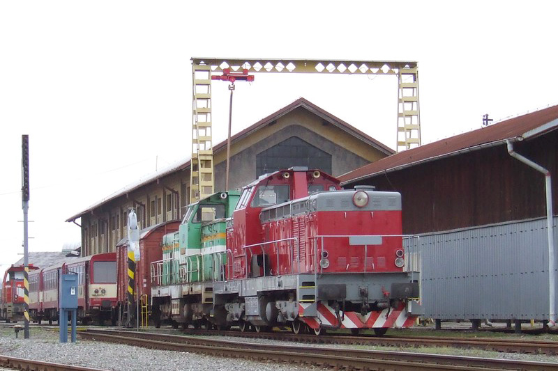 Lokomotivy 735.286 a 714.002 odstavené v depu Rakovník 2. prosince 2006